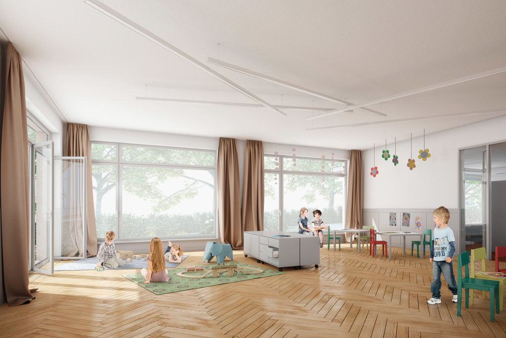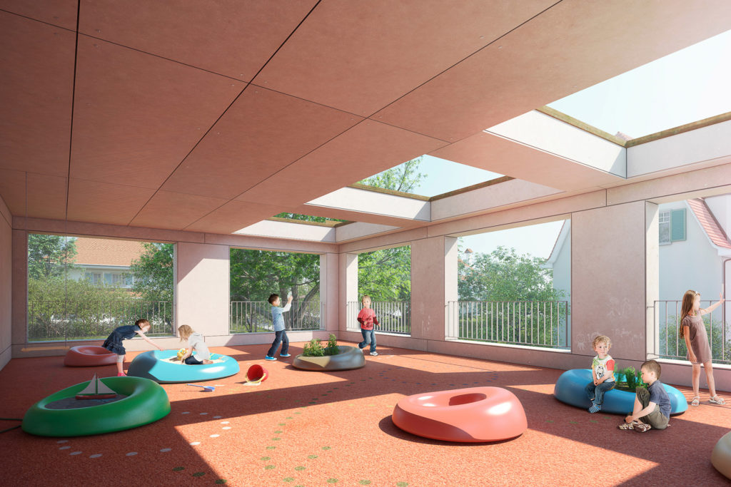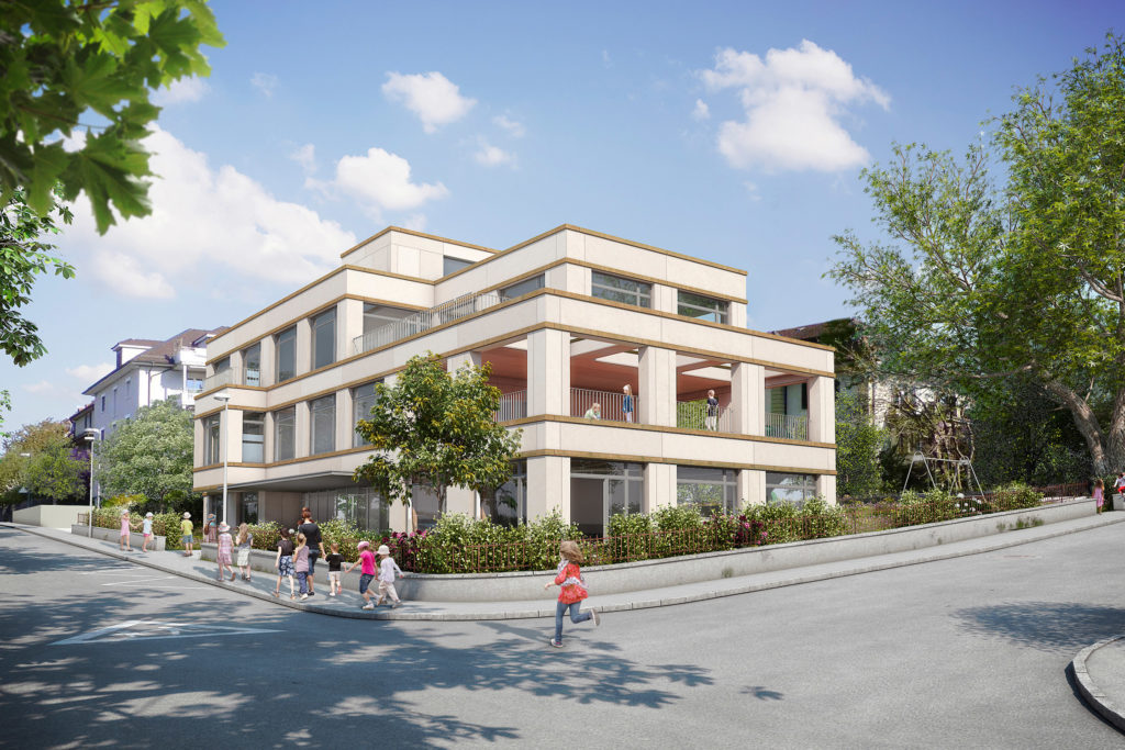 Baurechtliche Rahmenbedingungen grenzten die städtebaulichen Möglichkeiten stark ein. Im Projekt wurden ortstypische und historische Elemente aus der Umgebung wie Loggien, Simse und Erker neu interpretiert und räumlich umgenutzt. Trotz der äusserst ökonomischen Grundrisse wurde eine hohe Diversität von qualitätsvollen Innen- und Aussenräumen angeboten.