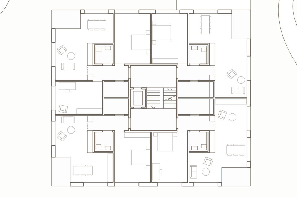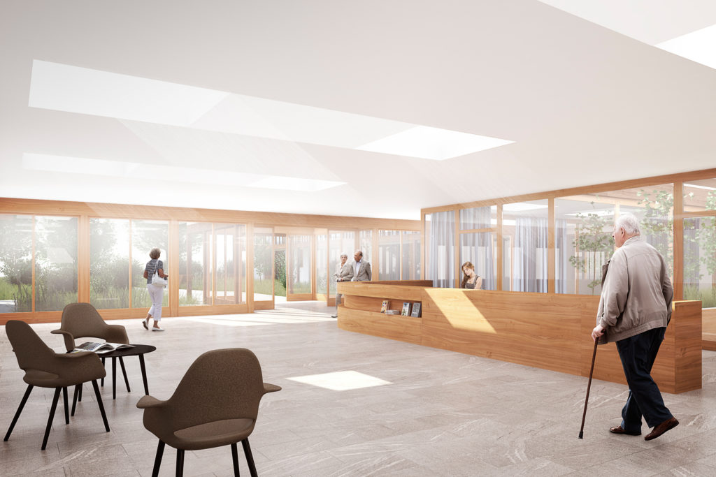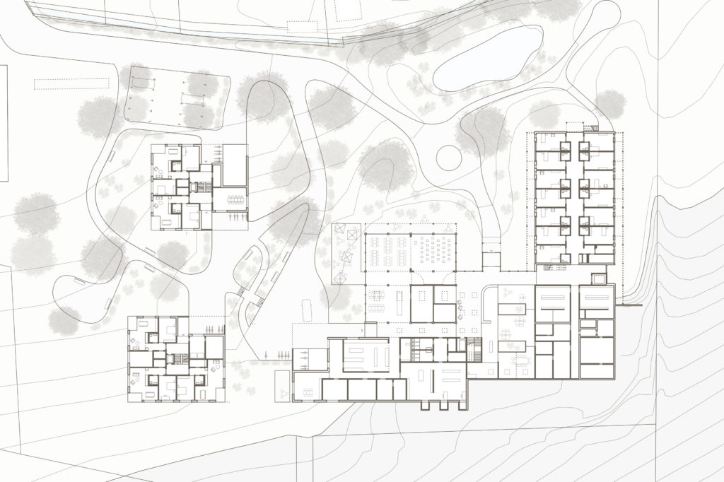 Der Entwurf für die Erweiterung des Alters- und Pflegeheim in Schüpfen sieht die hangseitige Erweiterung und die Setzung von zwei unabhängigen Baukörpern als südlichen Abschluss der winkelförmigen Gebäudetypologie vor. Der Eingangsbereich liegt im Schnittpunkt der Gebäudeteile Alt und Neu und wird zu einer grosszügigen Eingangshalle umgebaut. Das Projekt wurde mit dem zweiten Rang bedacht.